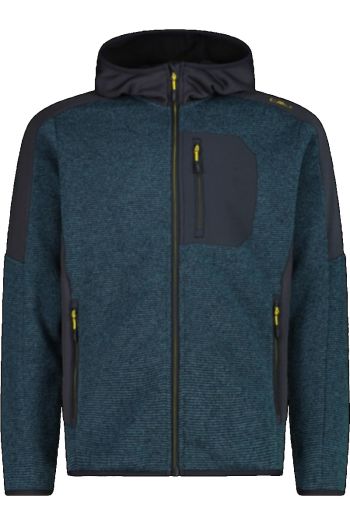 Giacca in pile con zip da uomo in knit tech con cappuccio Blu